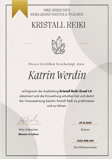 Januar 2026 - Abschluss Kristall-Reiki Ausbildung Grad 1-6